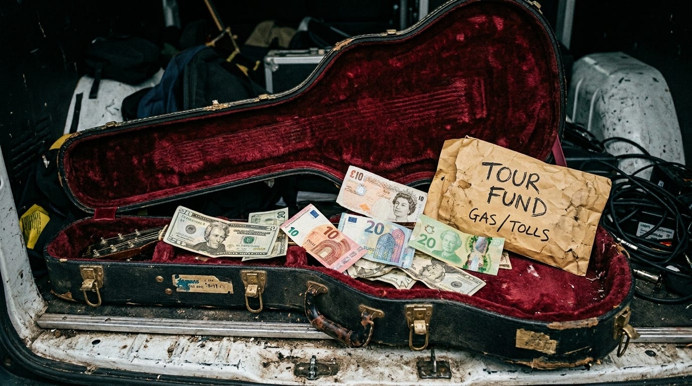 Playing international festivals is the dream. Losing 8% of your payout to a terrible currency exchange rate at the airport is the nightmare.
